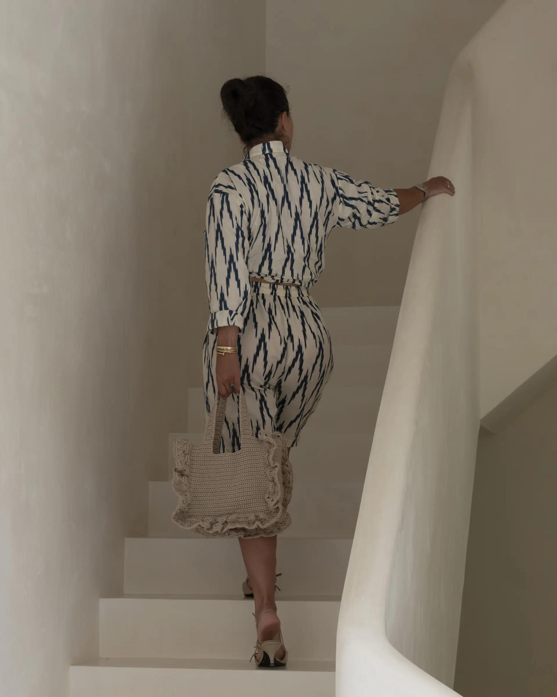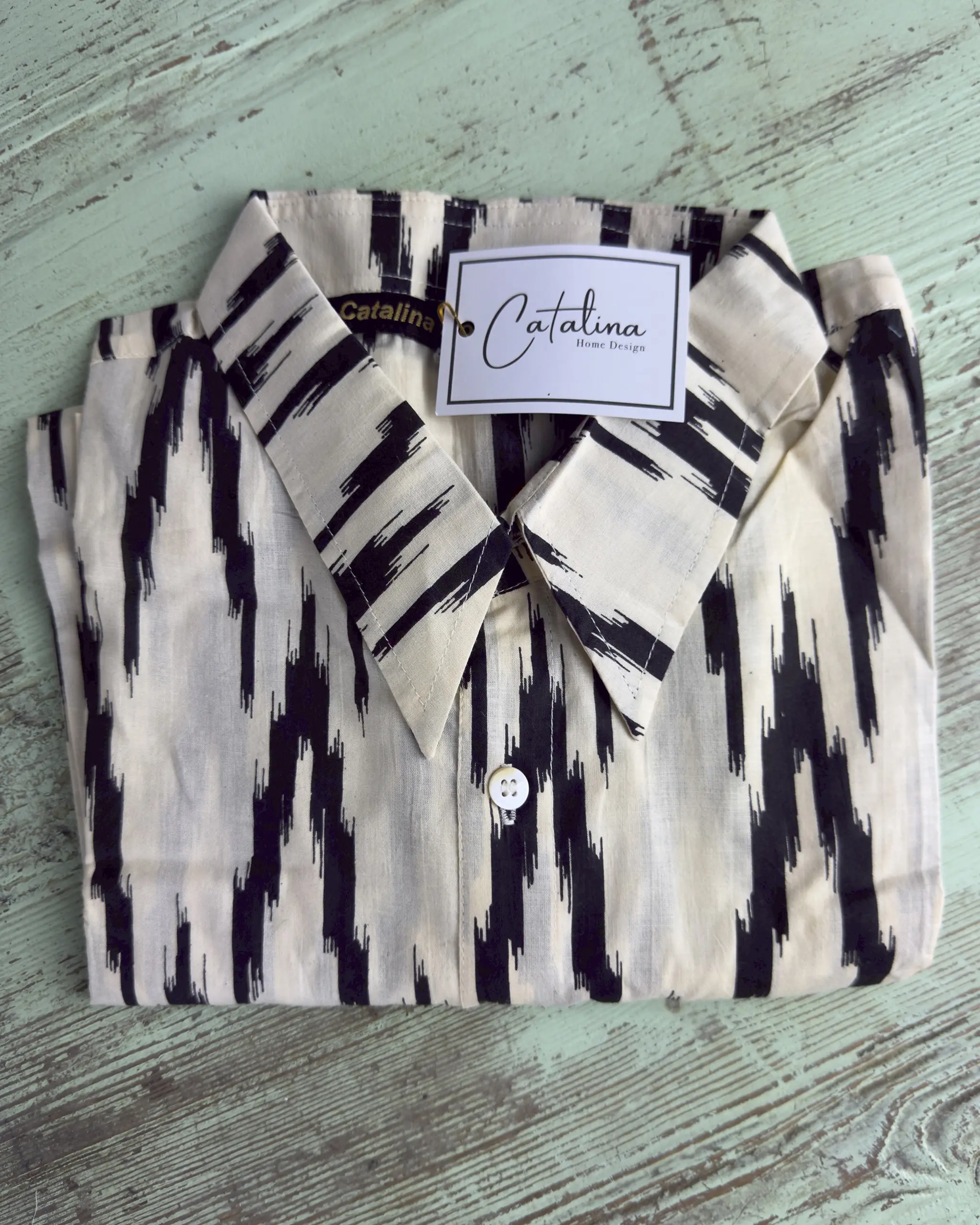 COLOR: Blanco / Negro (estampado imitación técnica Ikat)