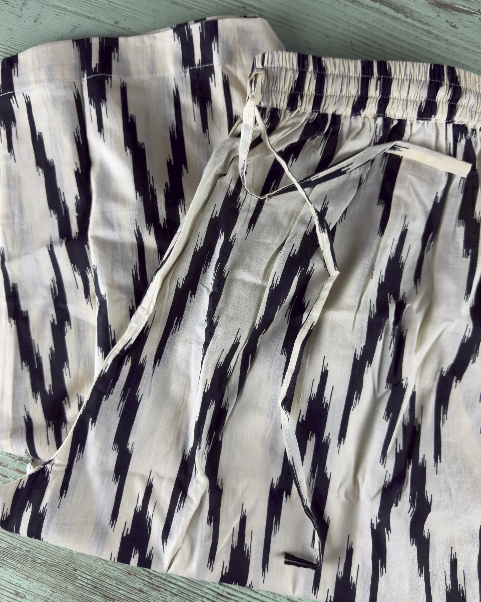 COLOR: Blanco / Negro (estampado imitación técnica Ikat)