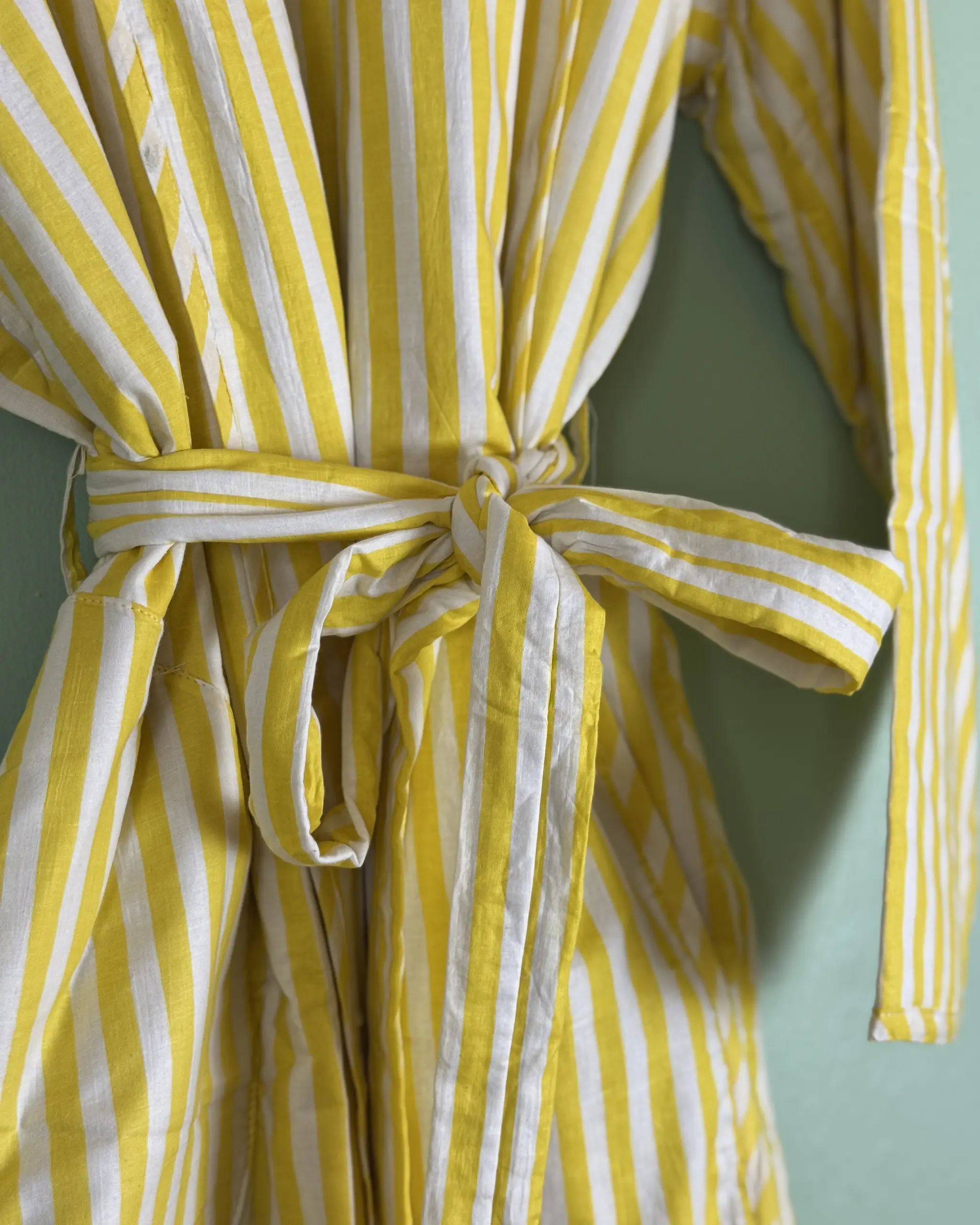 CARACTERÍSTICAS: Albornoz de manga larga, con cierre de cinturón del mismo tejido y bolsillos delanteros. Disponible mantelería, fundas de cojín, neceseres y monederos con el mismo estampado.