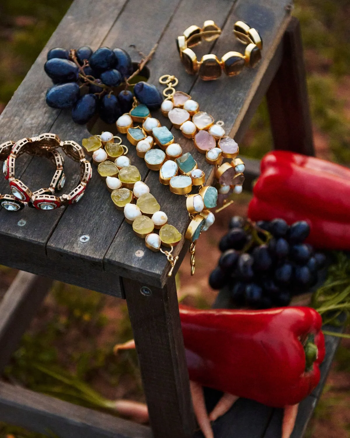 MATERIALES: piedras semipreciosas y perlas engastadas en Bronce
