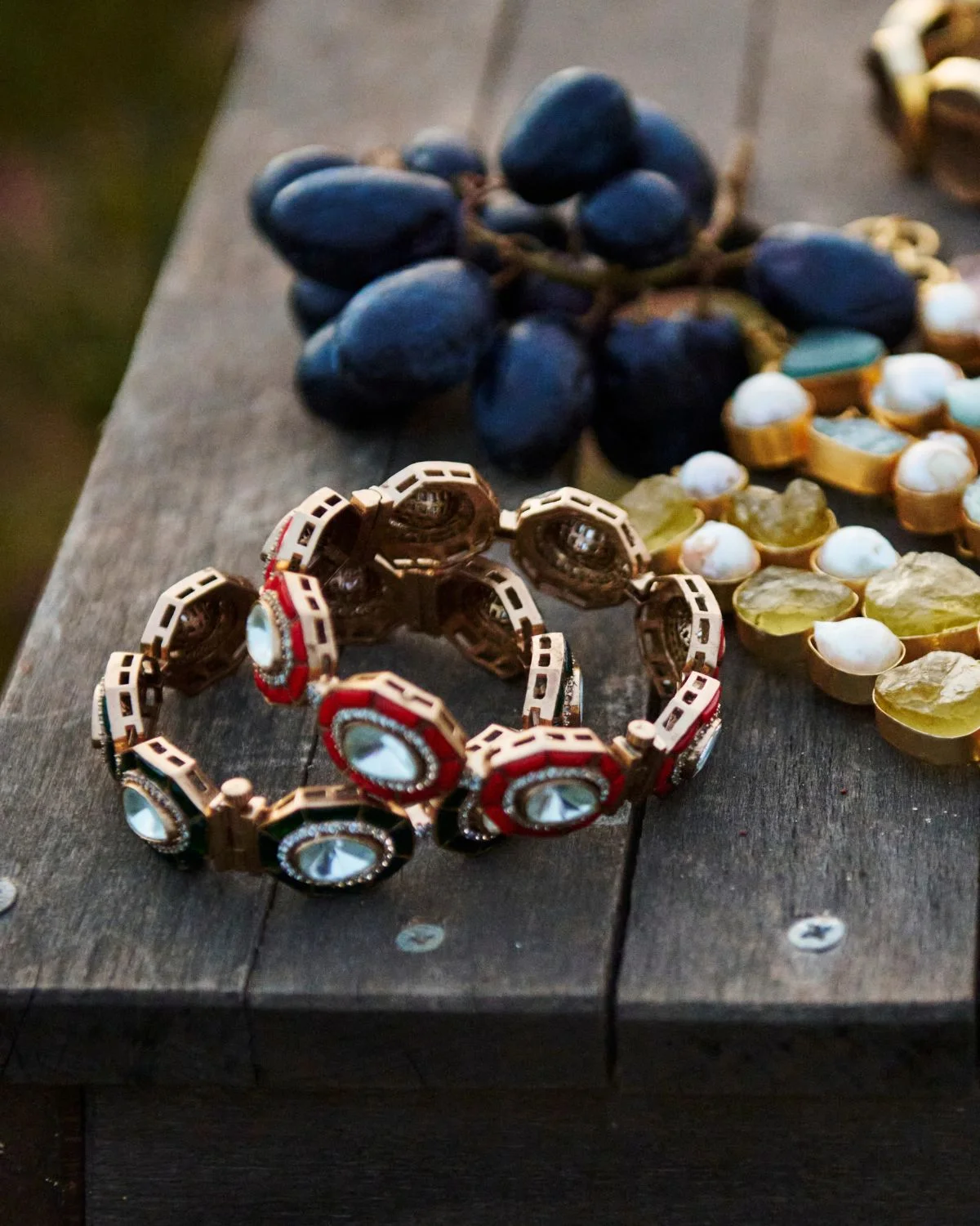 El brazalete verde puede llevarse de forma individual para realzar un look más minimalista o combinarse con otros brazaletes siguiendo la tendencia de superposición, aportando volumen y carácter al atuendo. Su versatilidad permite adaptarlo a diferentes estilos, desde los más elegantes hasta propuestas más llamativas.
