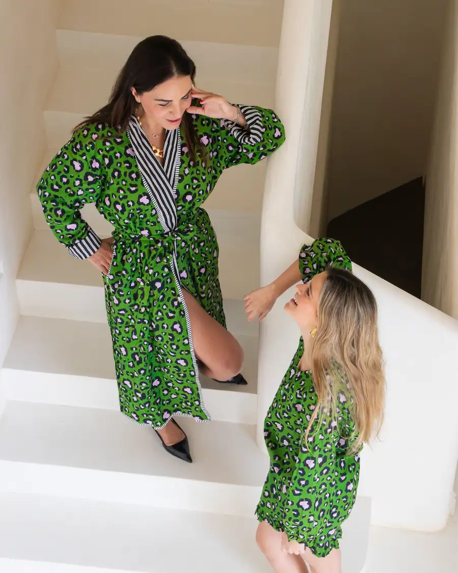 Albornoz de Mujer Animal Print Verde con Detalles a Rayas – Estilo Mediterráneo