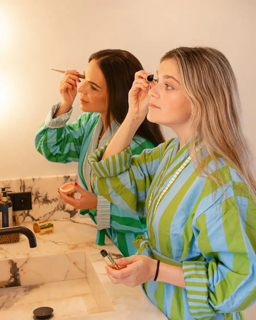 Albornoz de Mujer Rayas Capri con Detalles – Estilo Mediterráneo