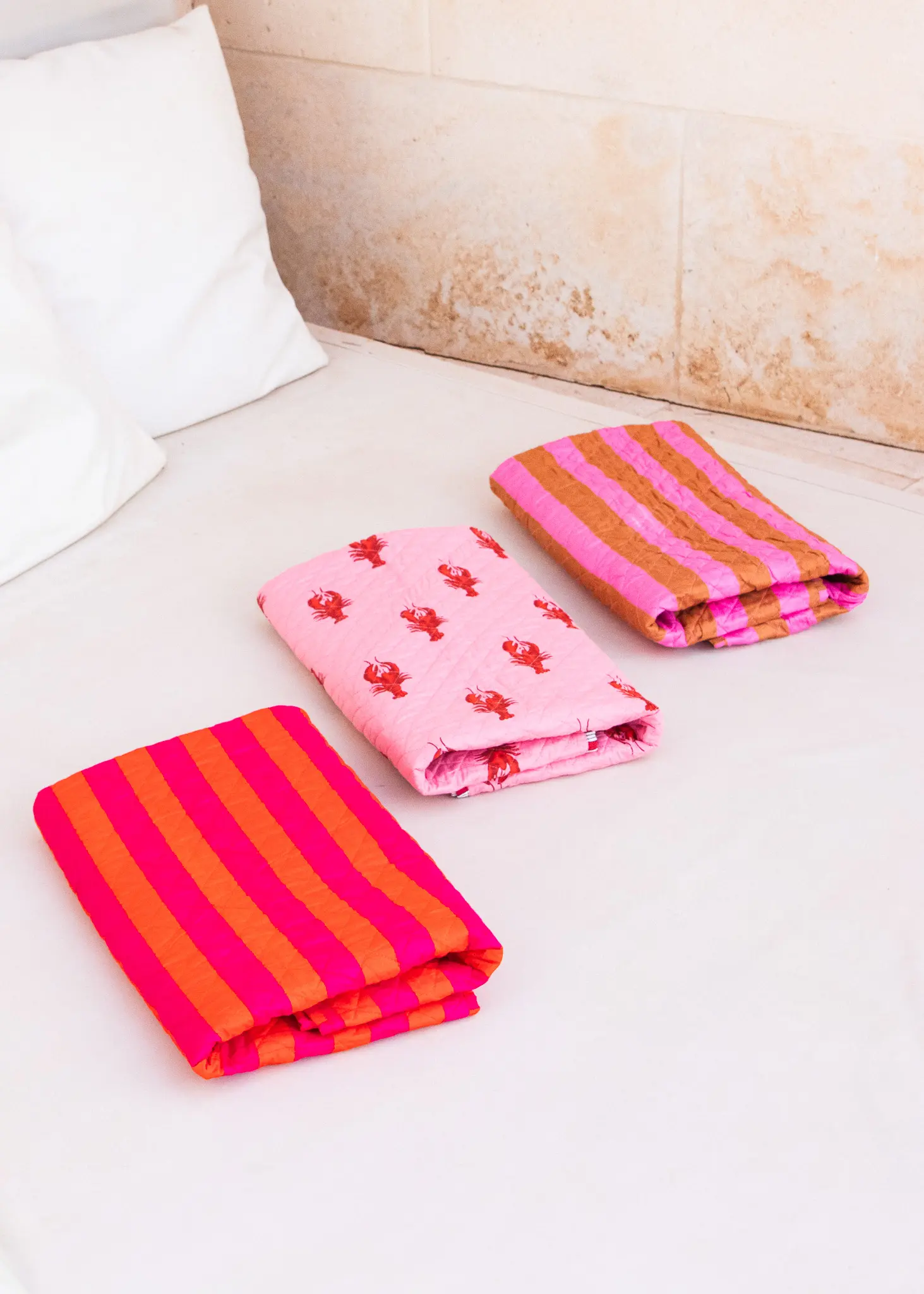 Manta de Verano Acolchada Langosta Rosa Mediterránea