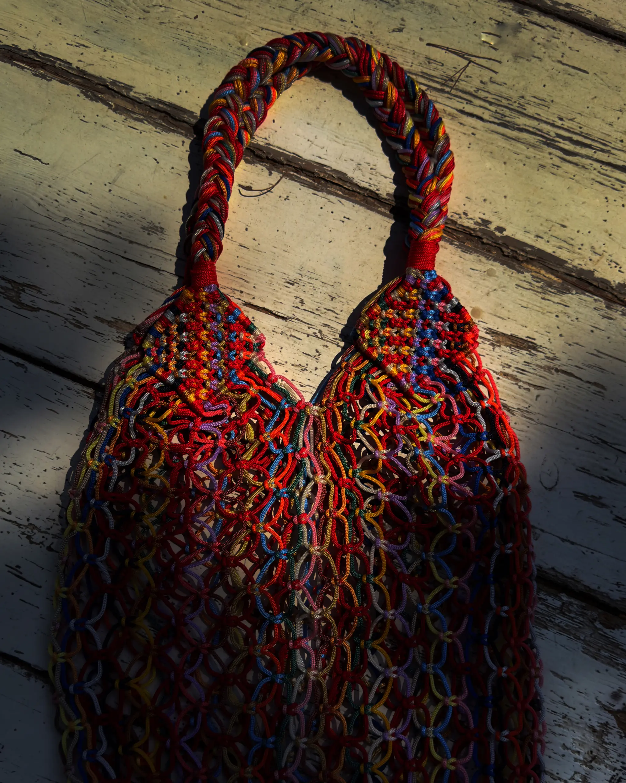 CARACTERÍSTICAS: Bolsa realizada a mano con la técnica de macramé