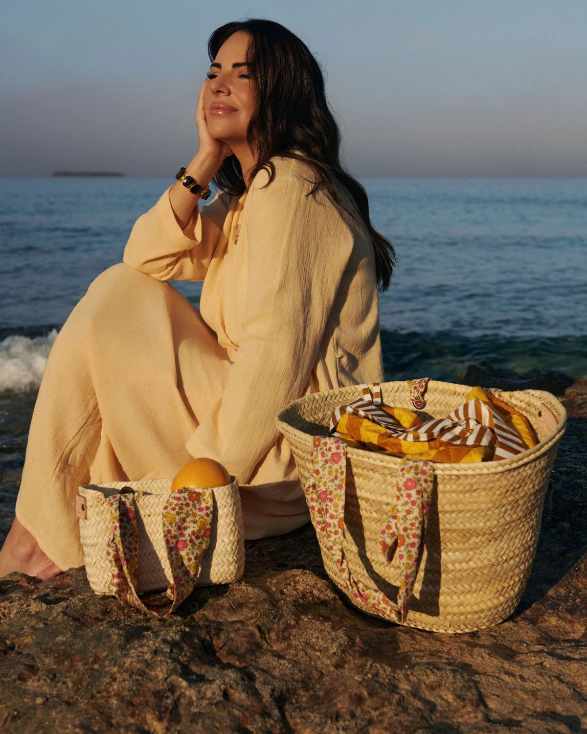 El delicado estampado floral que acompaña esta cesta de palmito aporta un toque suave y atemporal que se reinventa cada temporada. Cassai Home & Fashion introduce esta tendencia con un equilibrio sutil entre frescura y sofisticación, manteniendo la esencia artesanal y mediterránea de la colección.