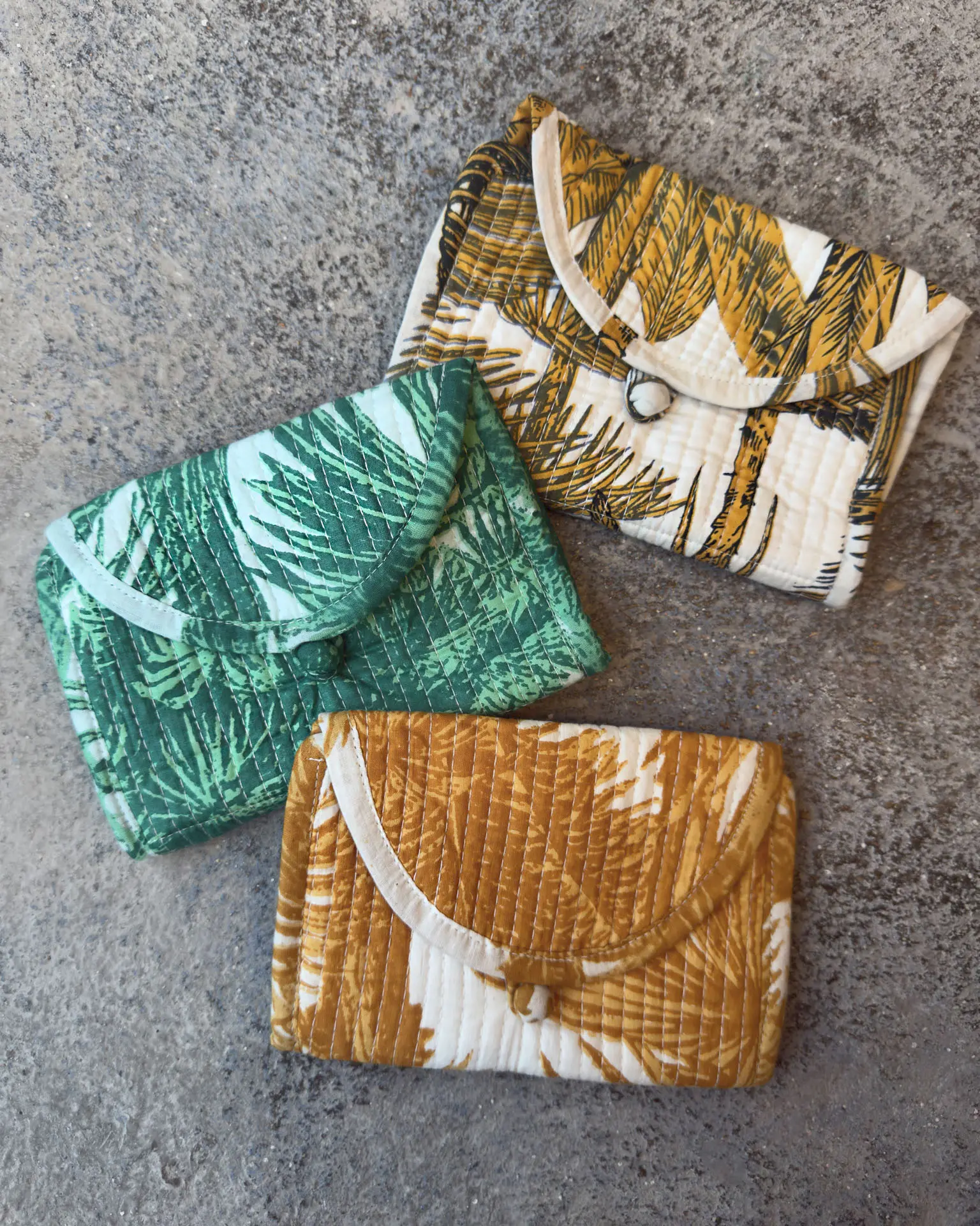 Descubre el monedero de tela estampado palmeras verdes para mujer, un accesorio que combina funcionalidad y diseño con la esencia del estilo mediterráneo.