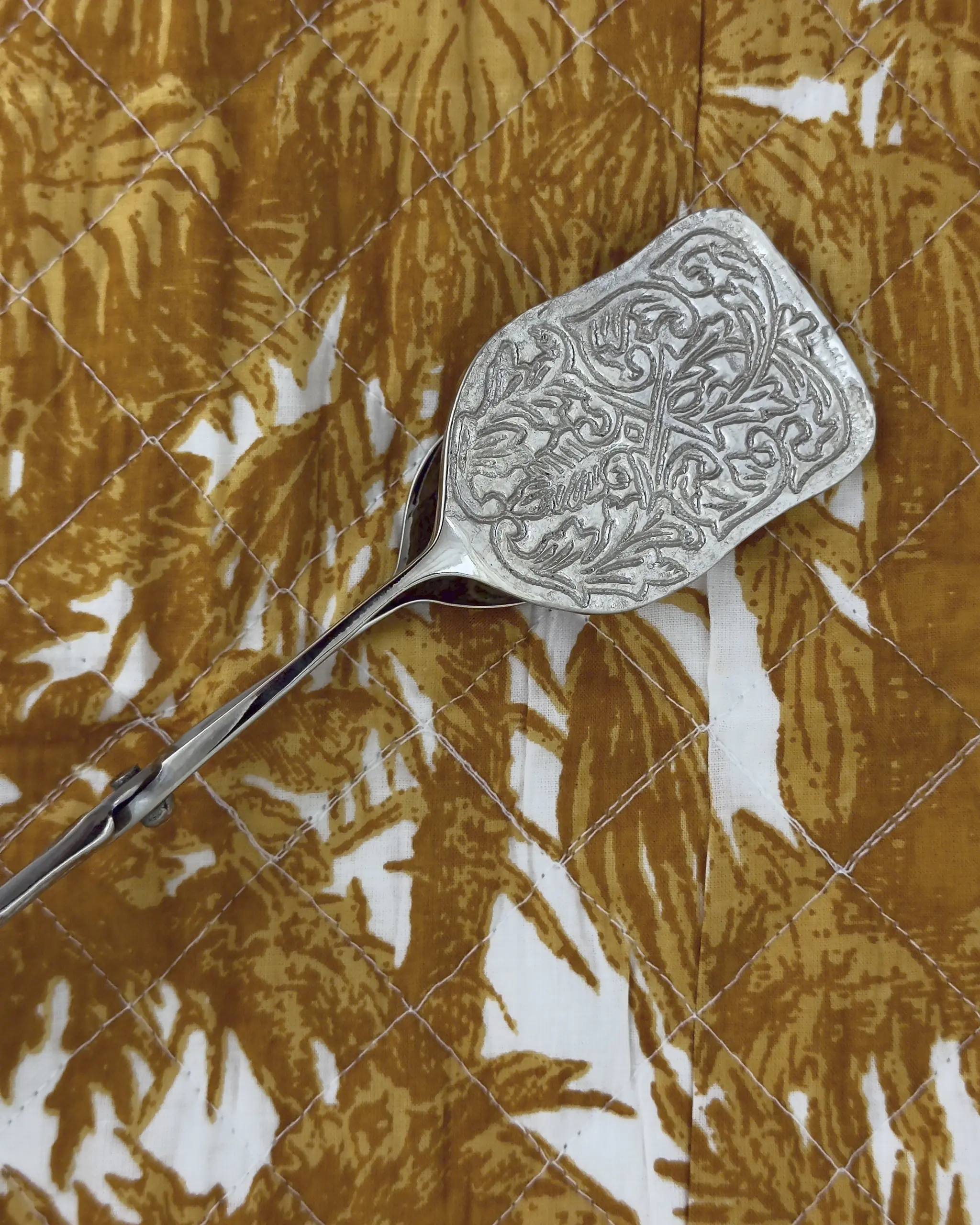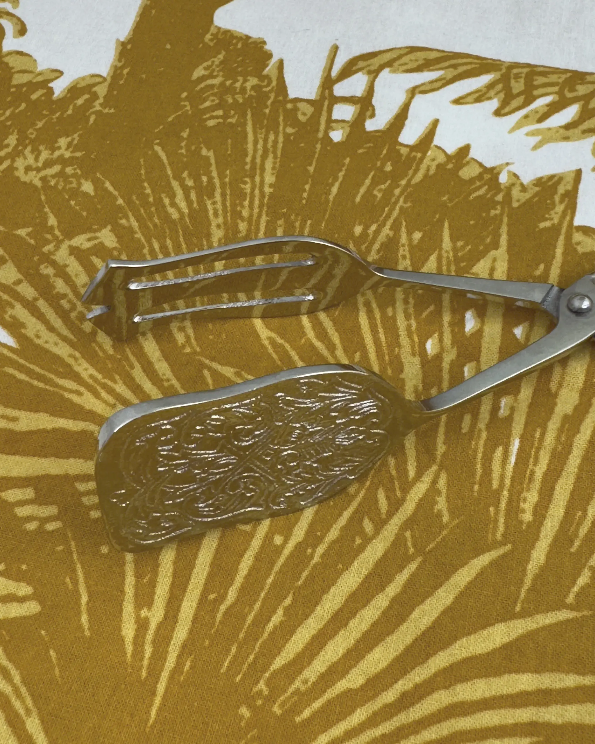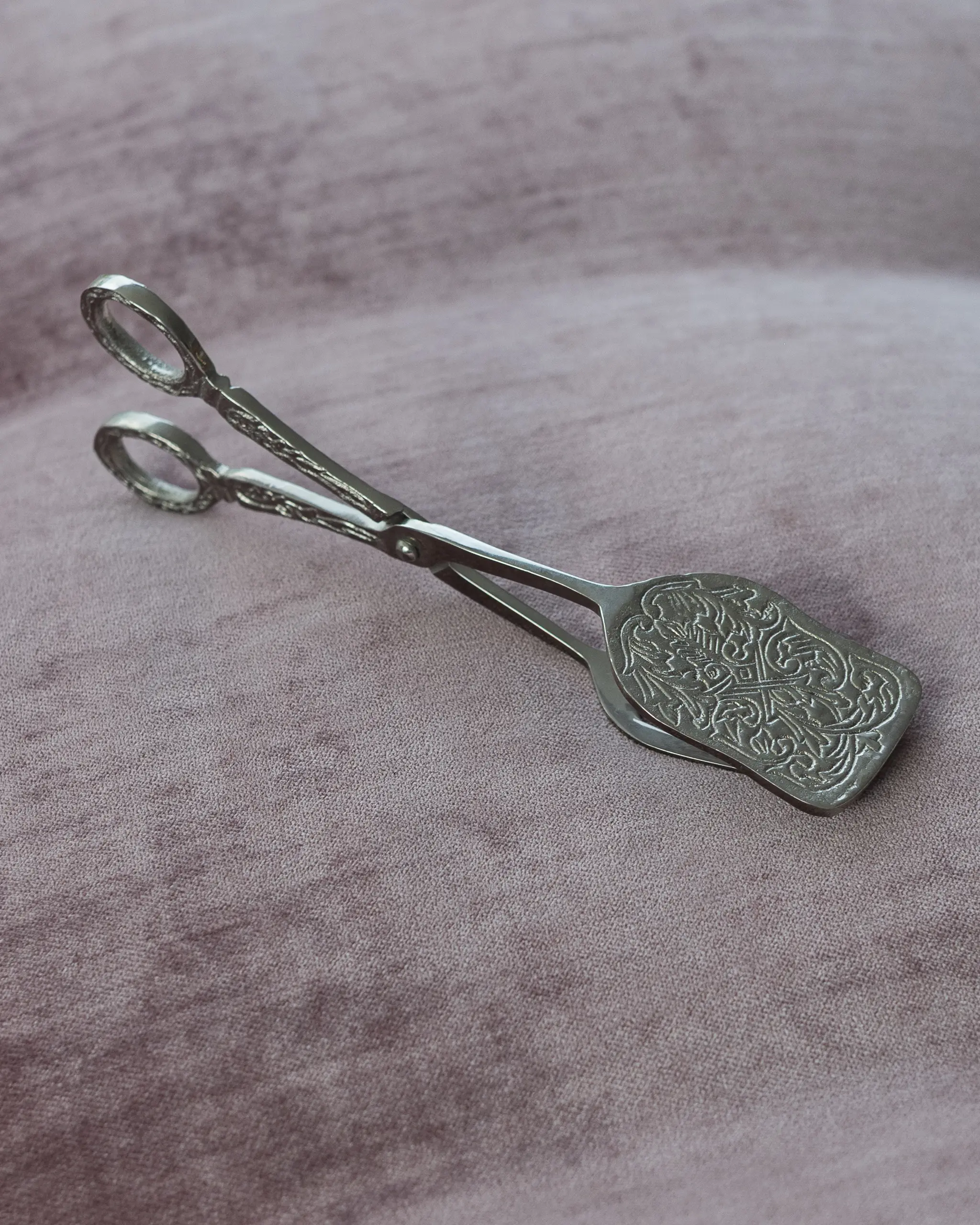 CARACTERÍSTICAS: Pinzas para servir grabadas.