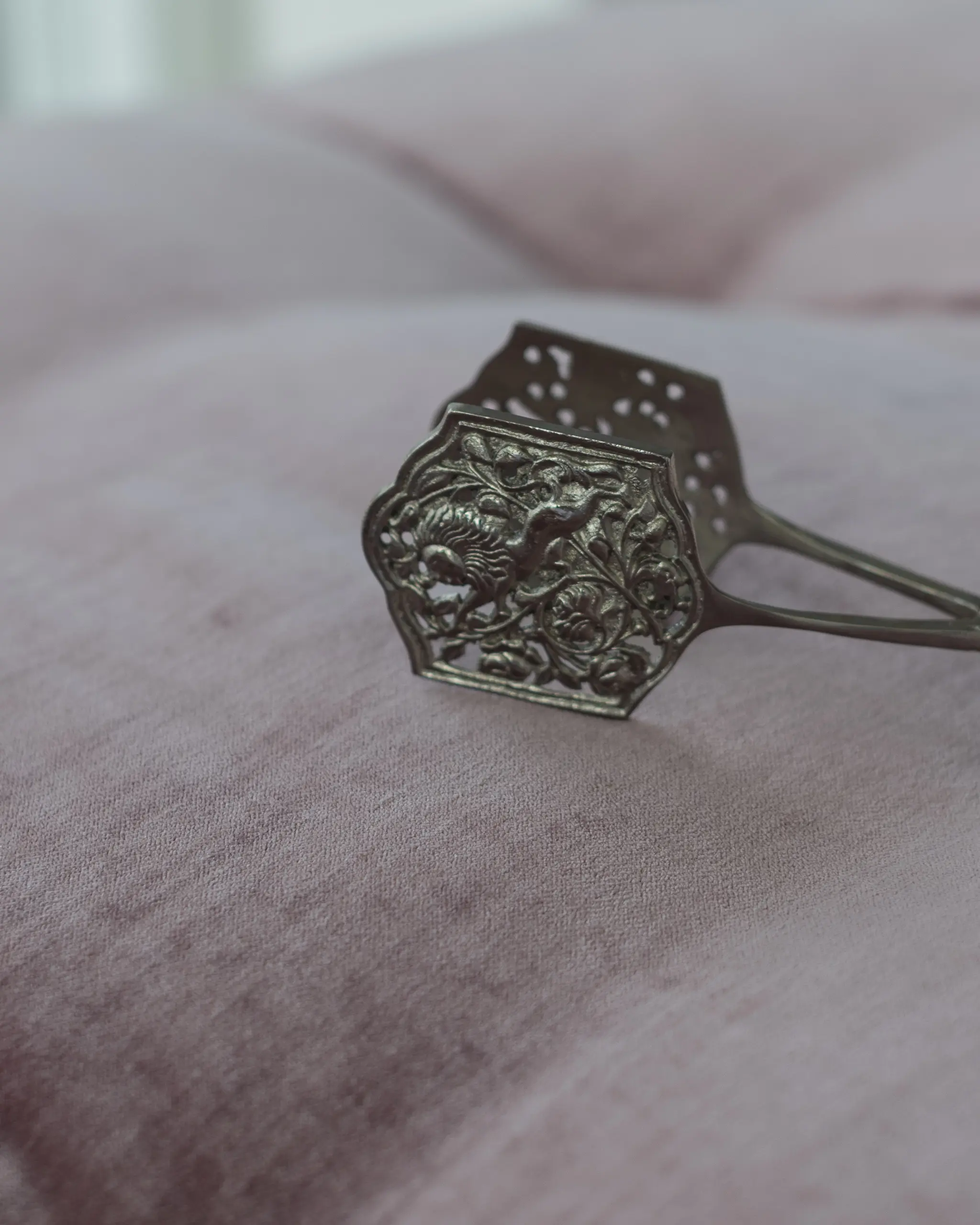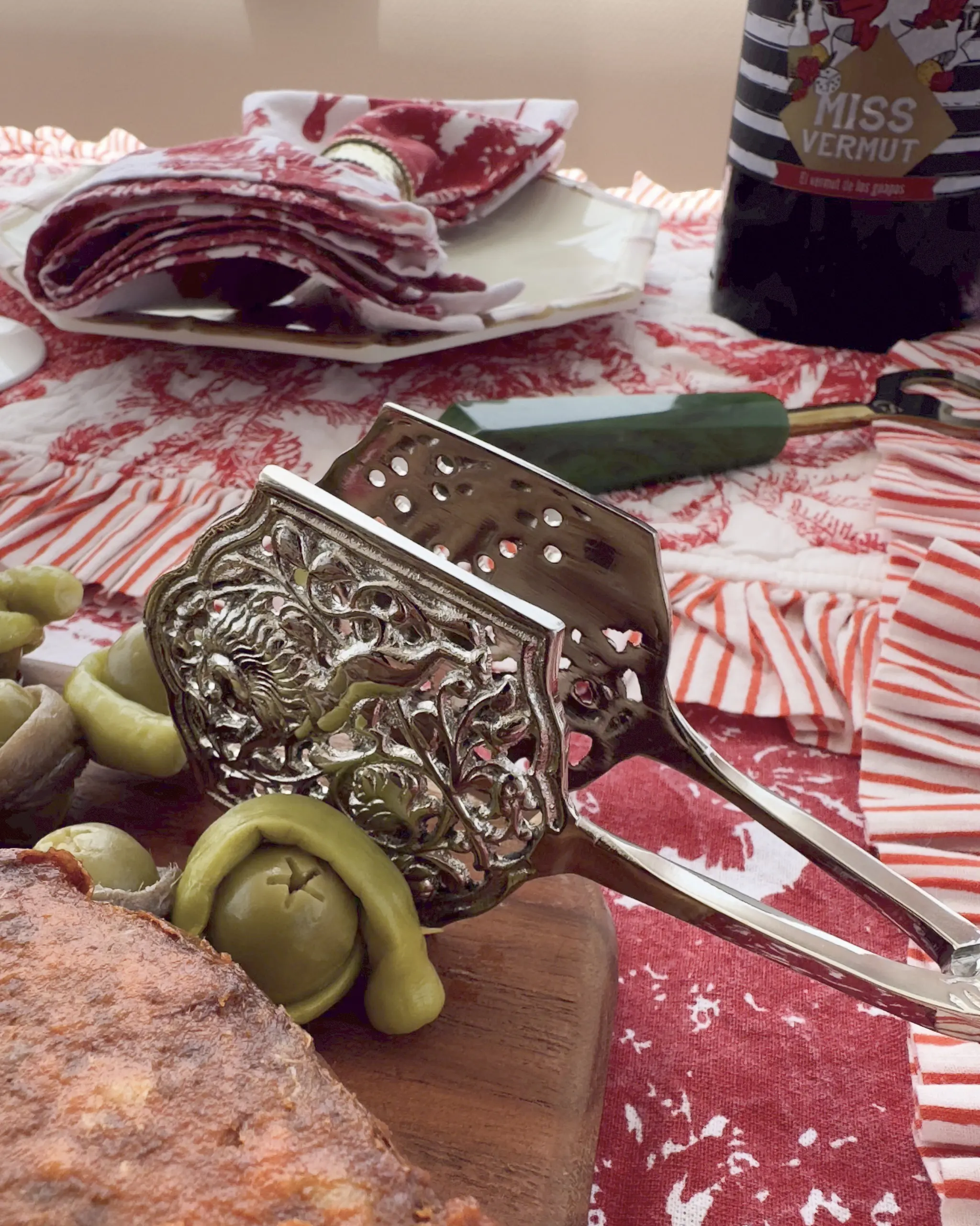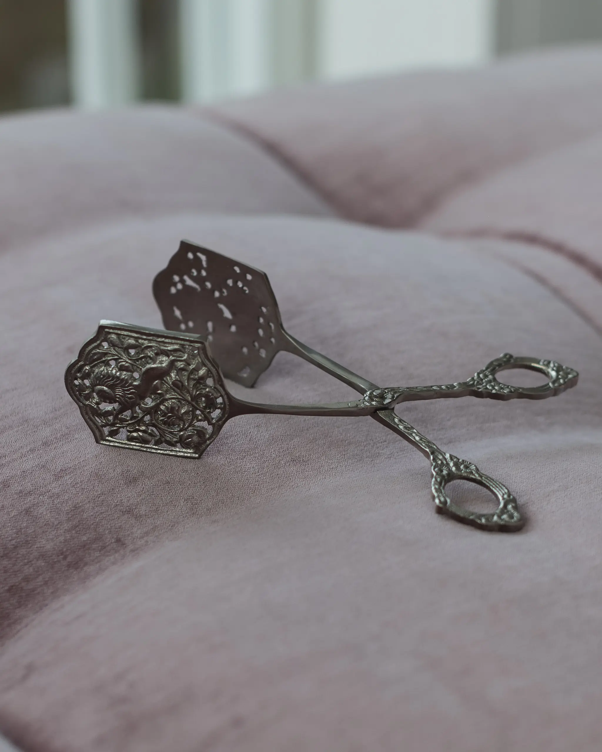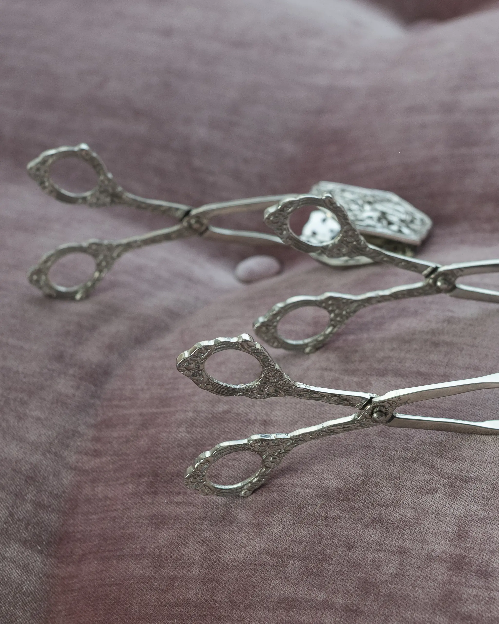 CARACTERÍSTICAS: Pinzas para servir grabadas.
