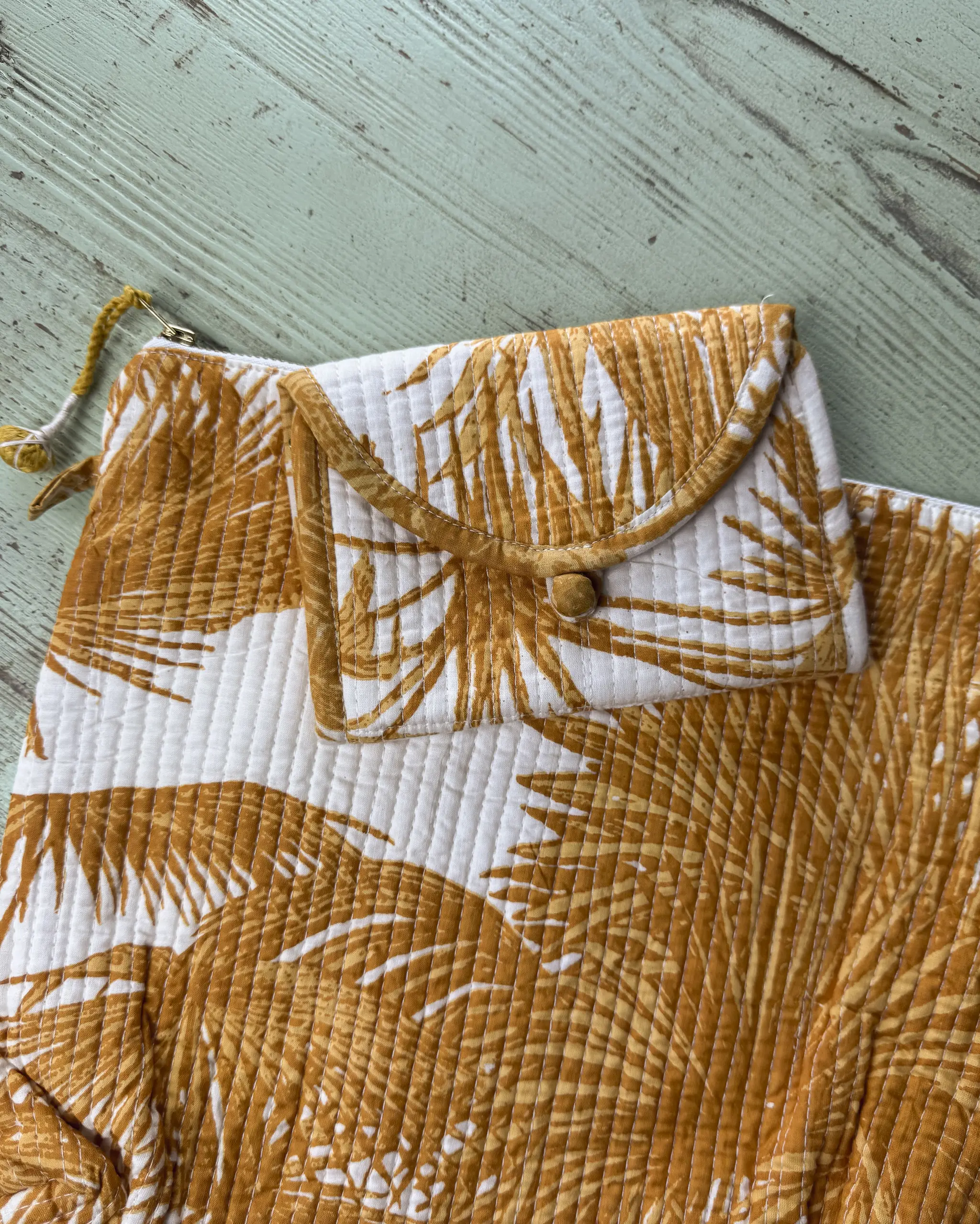 CARACTERÍSTICAS: Bolsa acolchada con cierre de cremallera, decorado con borla.