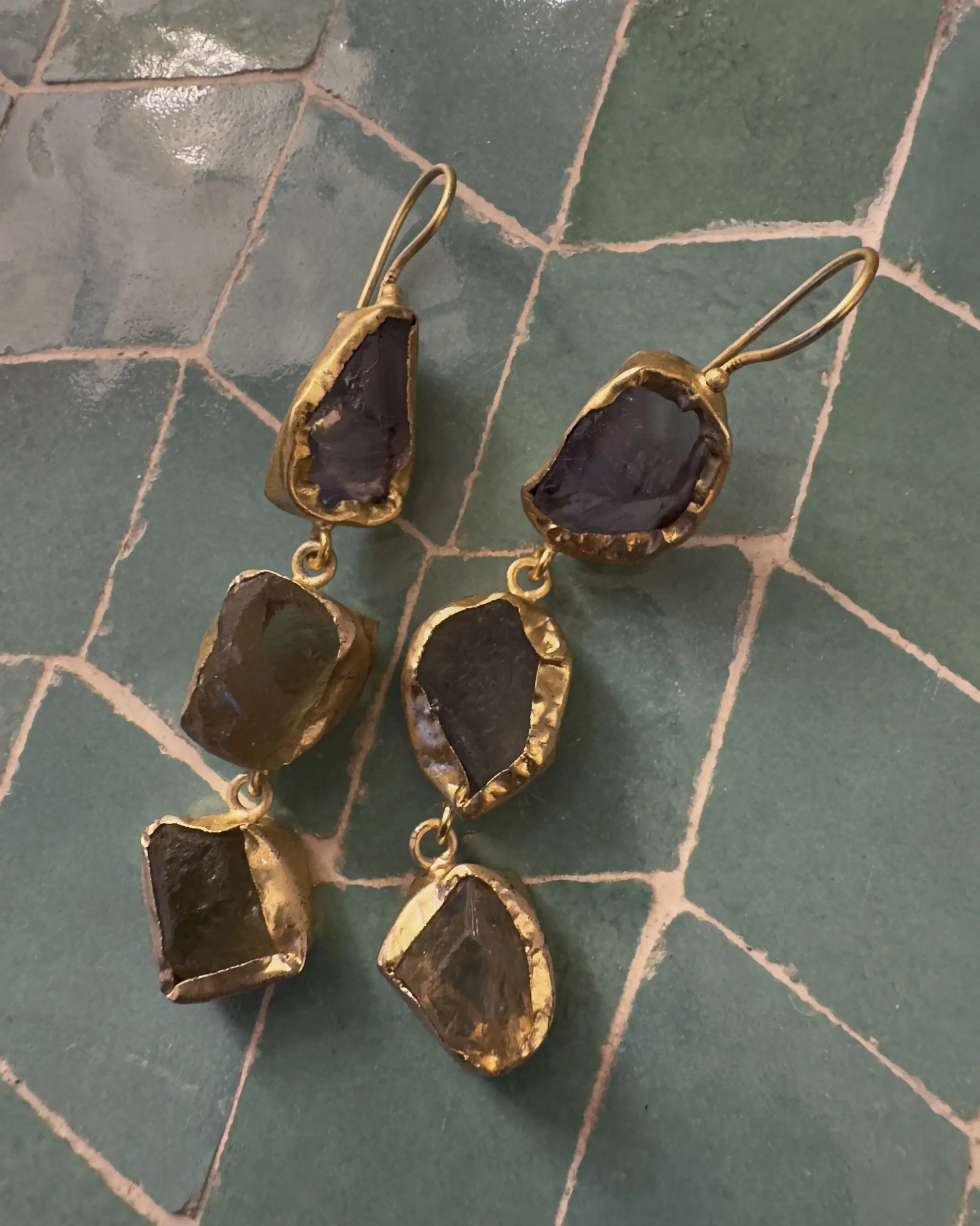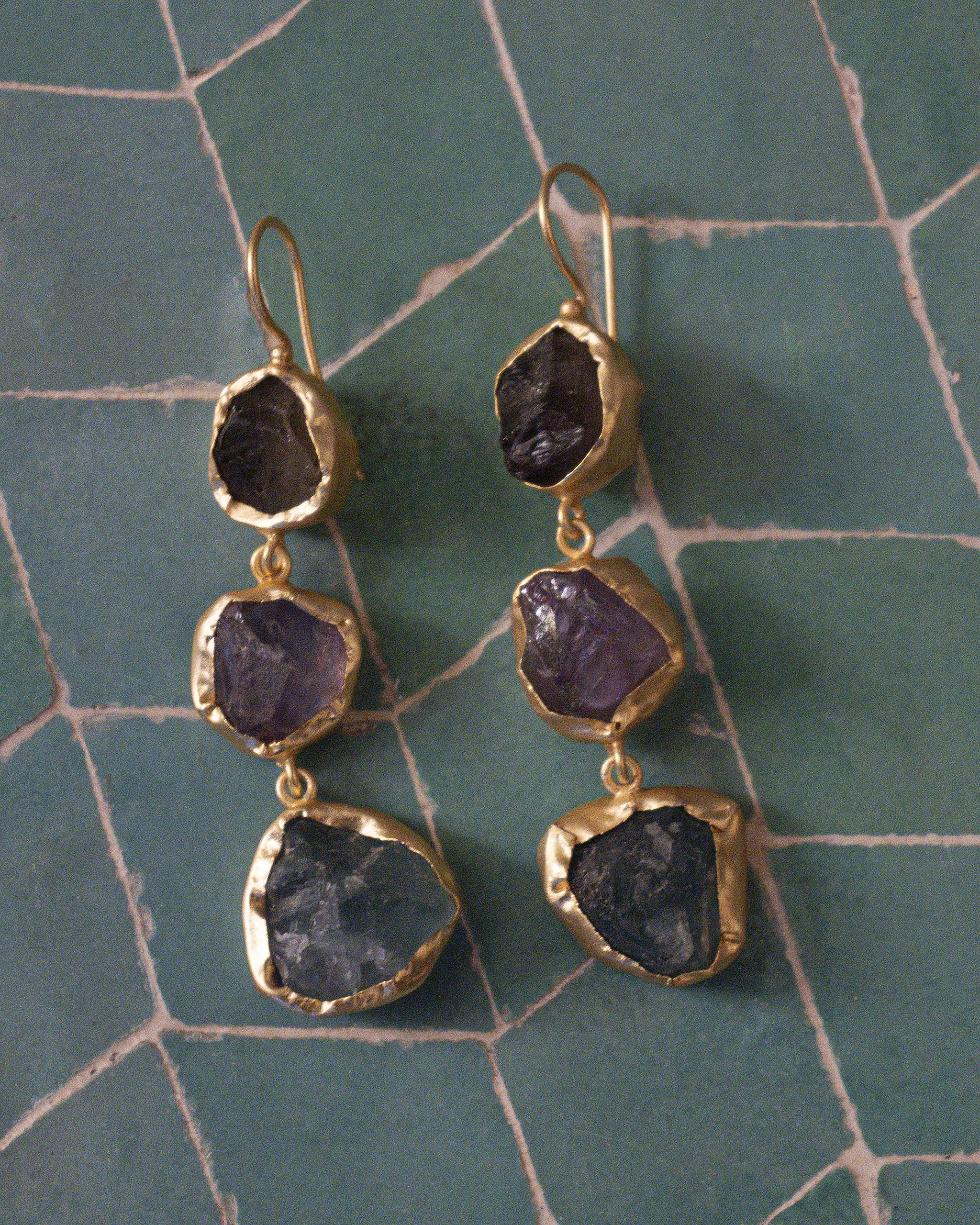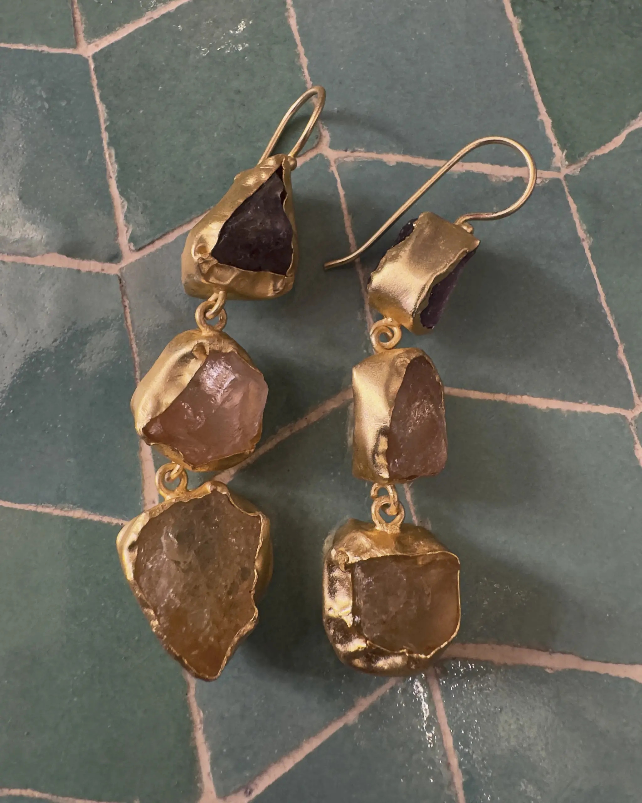 Materiales: piedras semipreciosas engastadas en latón con baño en oro