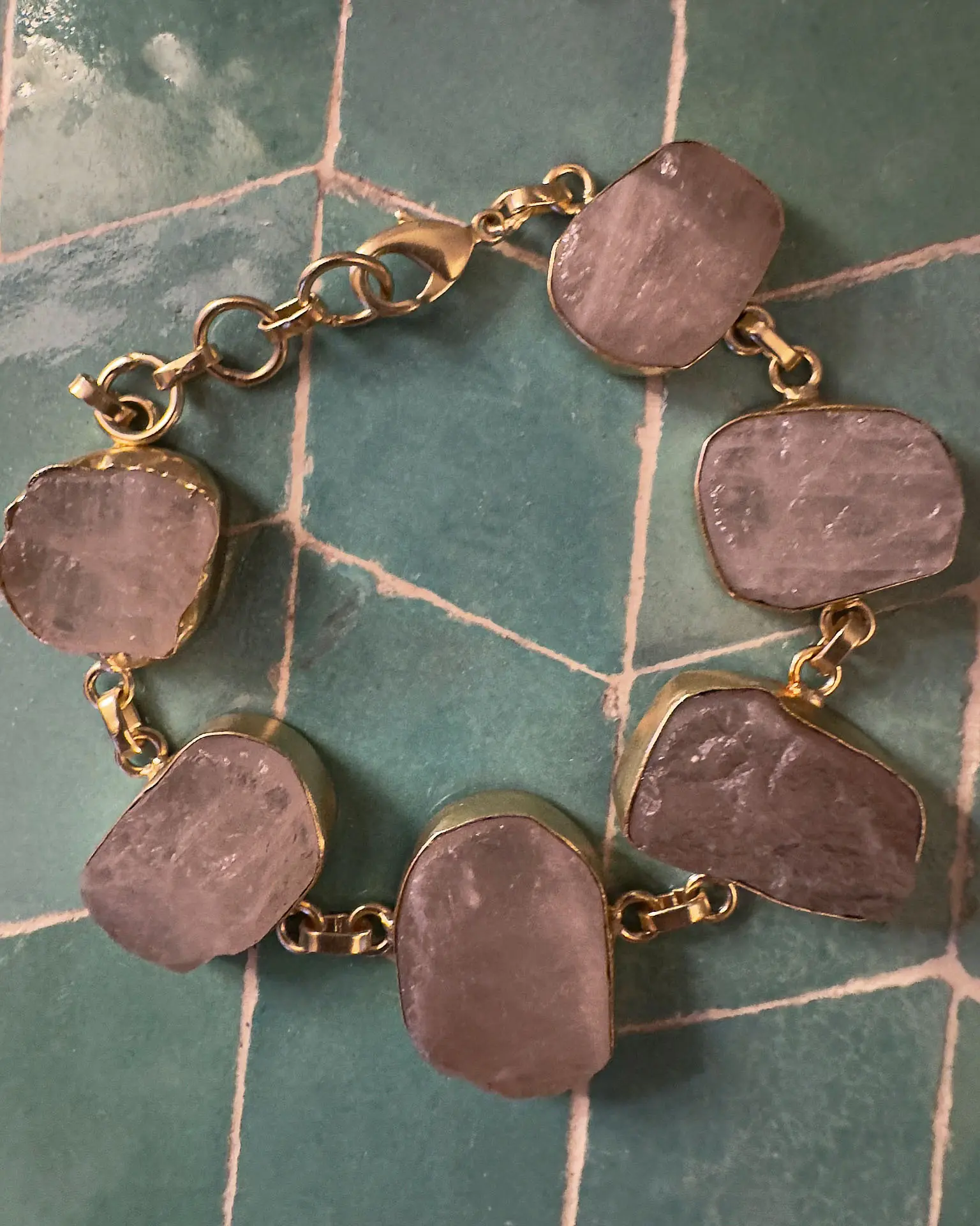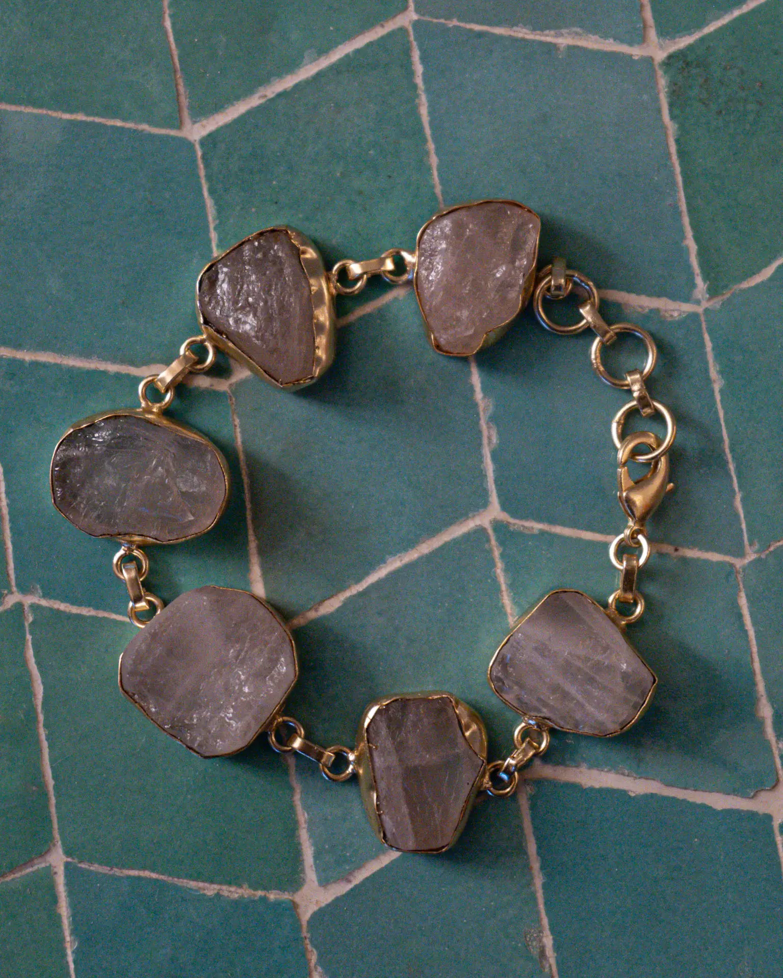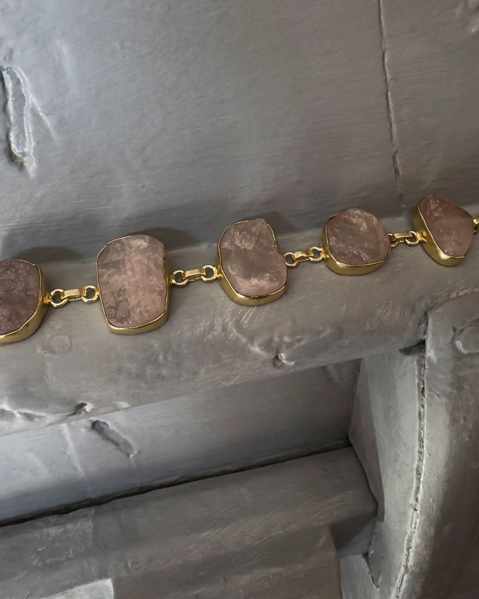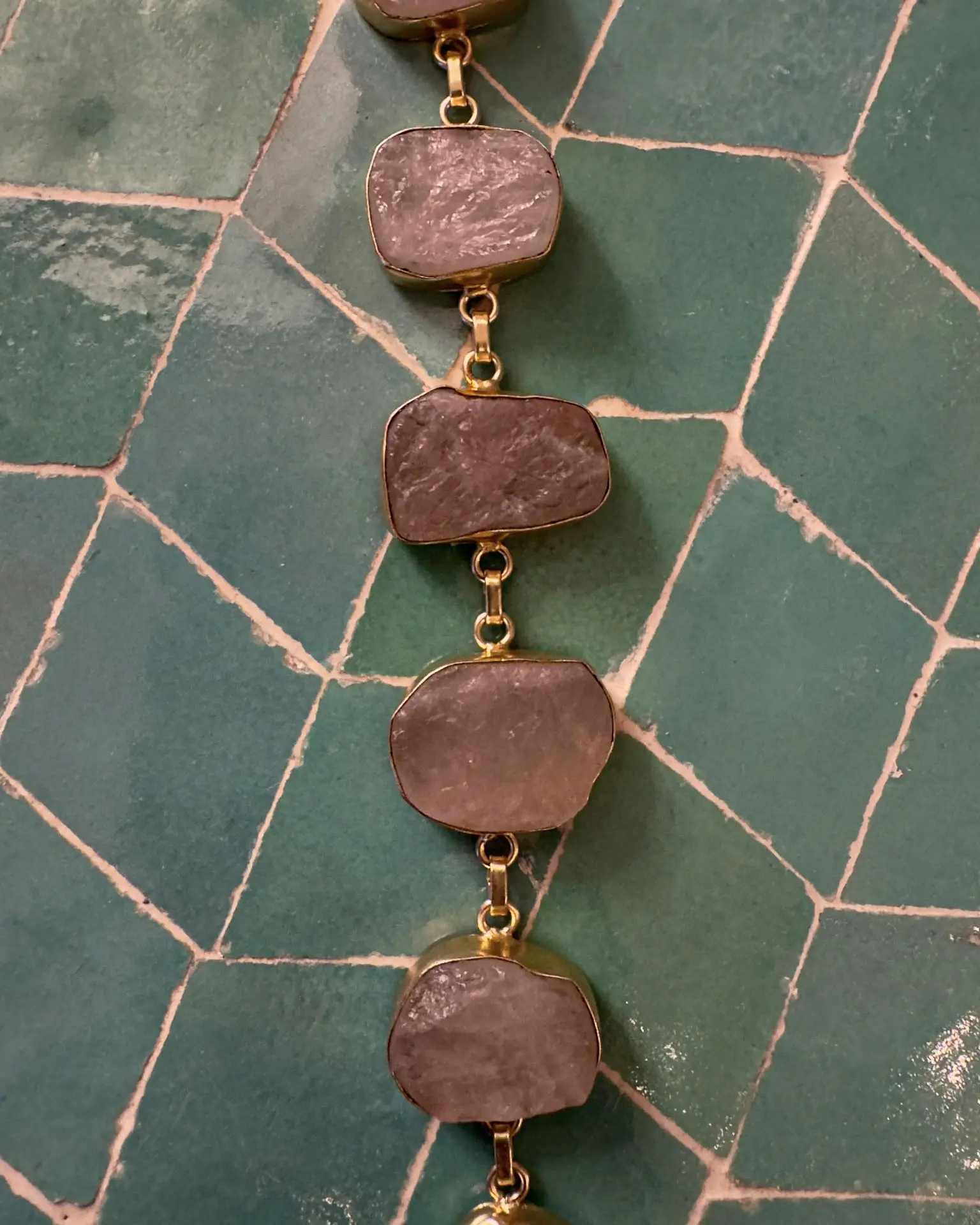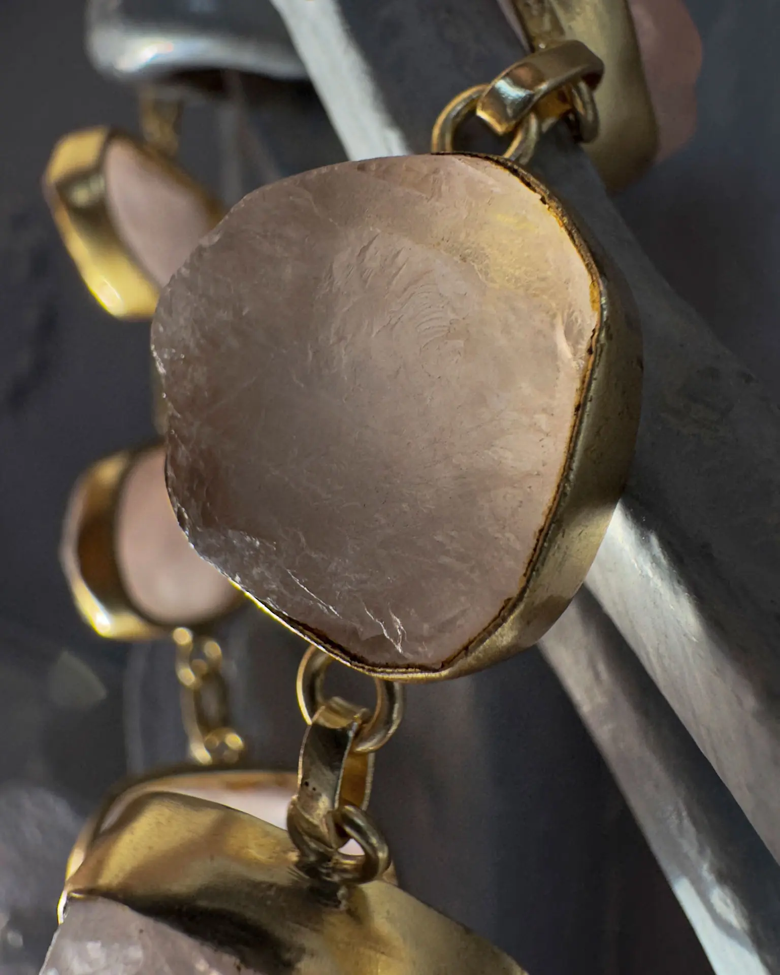 Materiales: cuarzo rosa engastada en latón con baño en oro